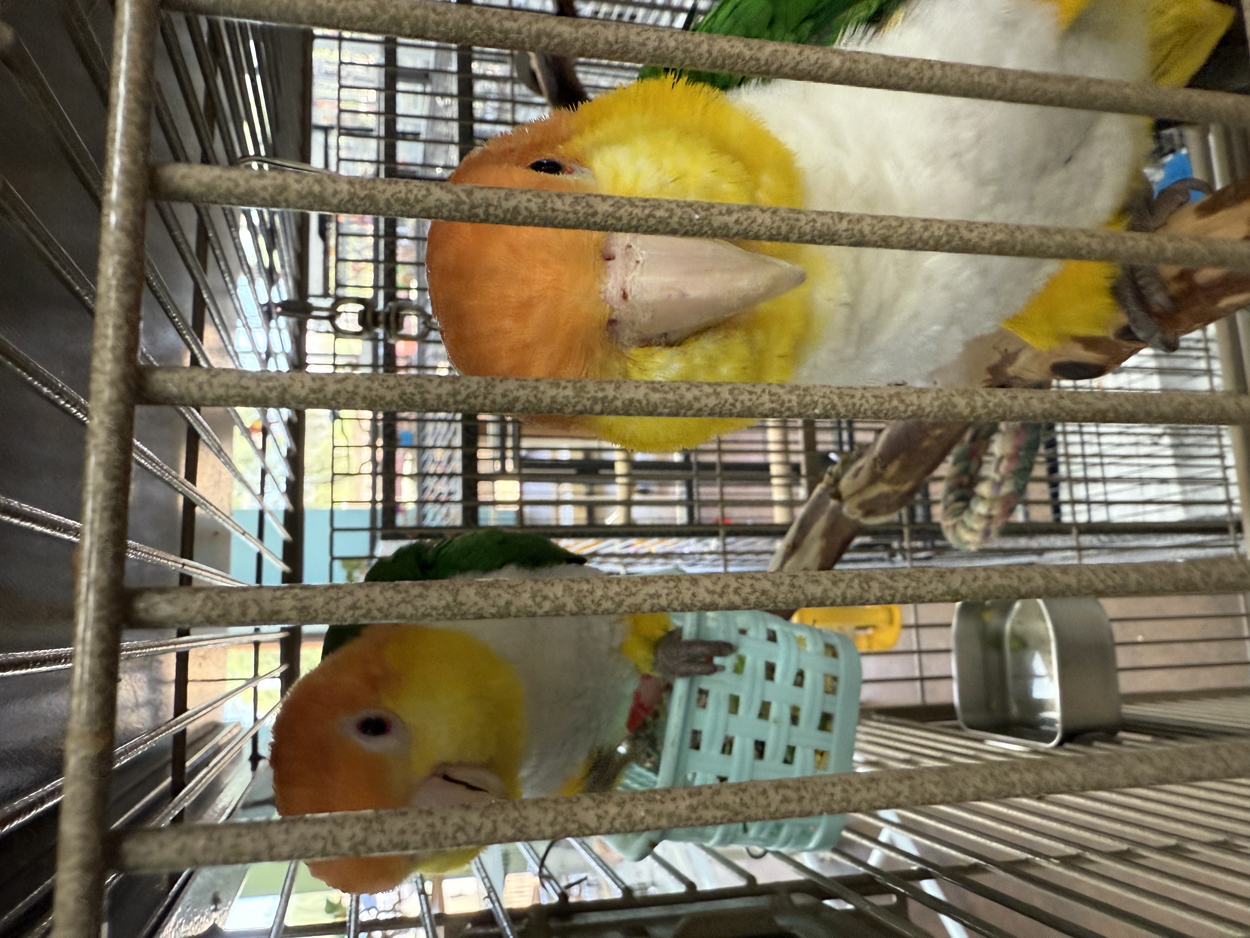 These Caique originally came from Tropic Zone. These two have a definite preference for men,, but they managed to get over it and were adopted by a woman. For birds with such strong personalities, you never know how they might change their minds.