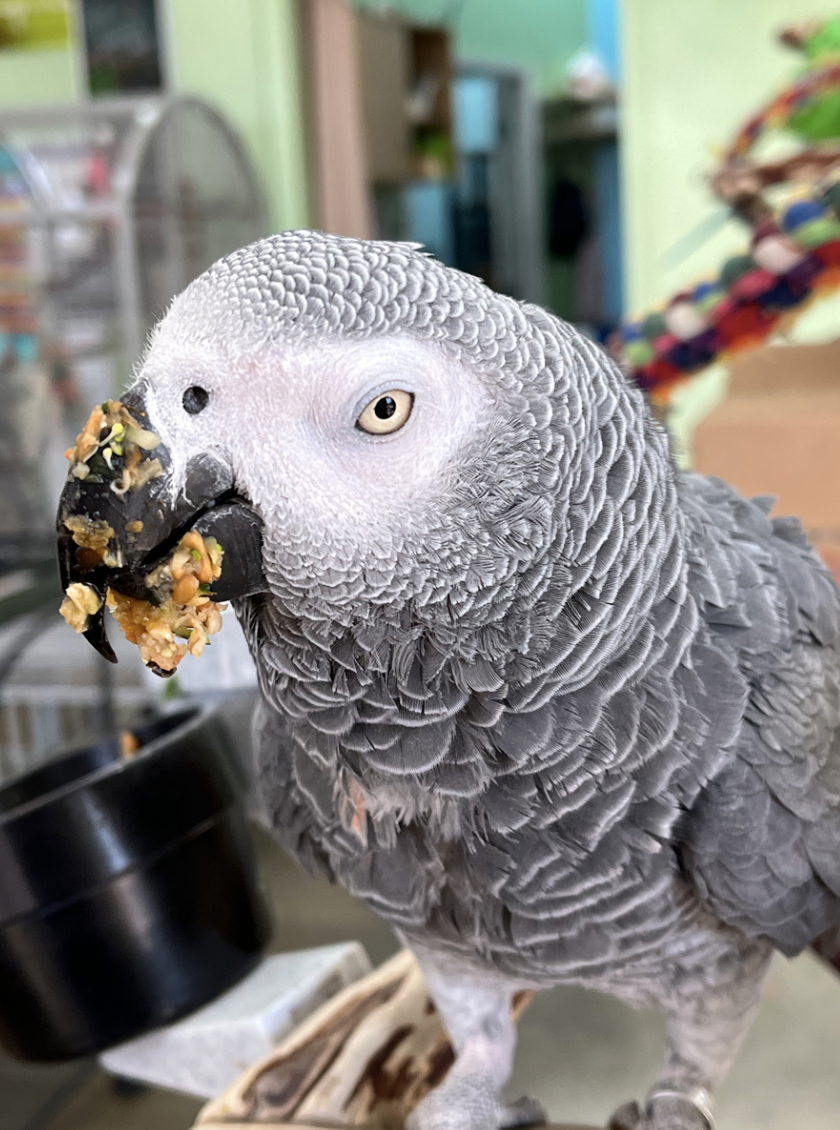 Echo is an African Grey and is one of two resident Greys here at Tropic Zone.