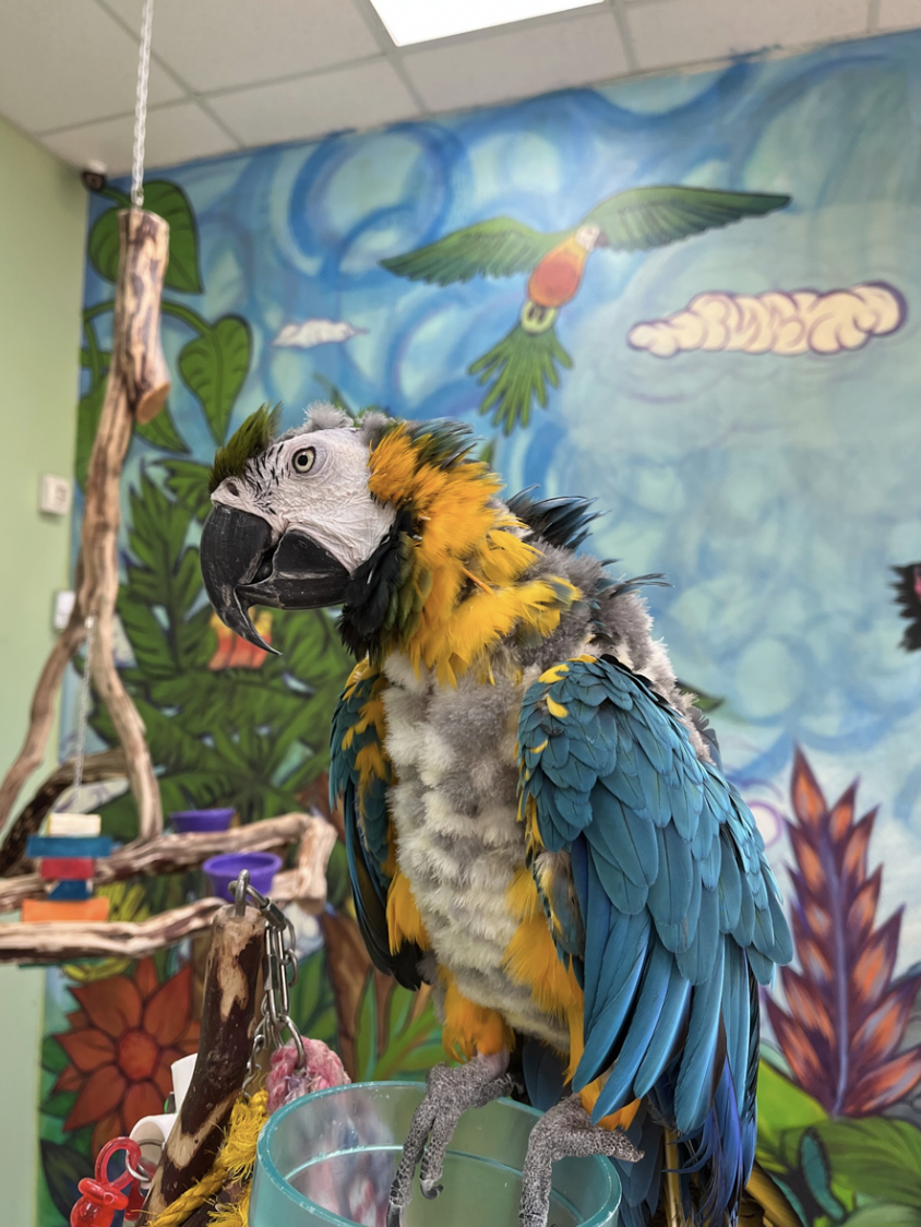 Meet Sandy, the Blue & Gold Macaw.